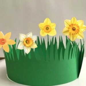 This week we are making paper flower crowns. Wear your yellow daffodil crown around while you enjoy the daffodils in bloom!