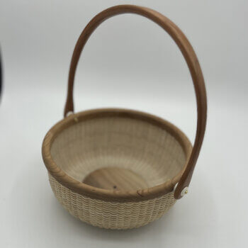 Each student will weave their own 7” Nantucket Basket with a cherry base, handle, and turned rim. This basket is called a tray as the finished basket is not as tall but the proportion of this basket resembles the popular egg basket with a low profile and tall handle.