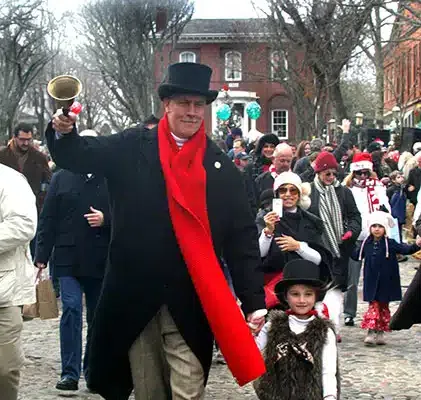 Nantucket’s Town Crier will ring in Christmas Stroll and lead visitors to Straight Wharf to greet Santa Claus. A Nantucket Chamber of Commerce event