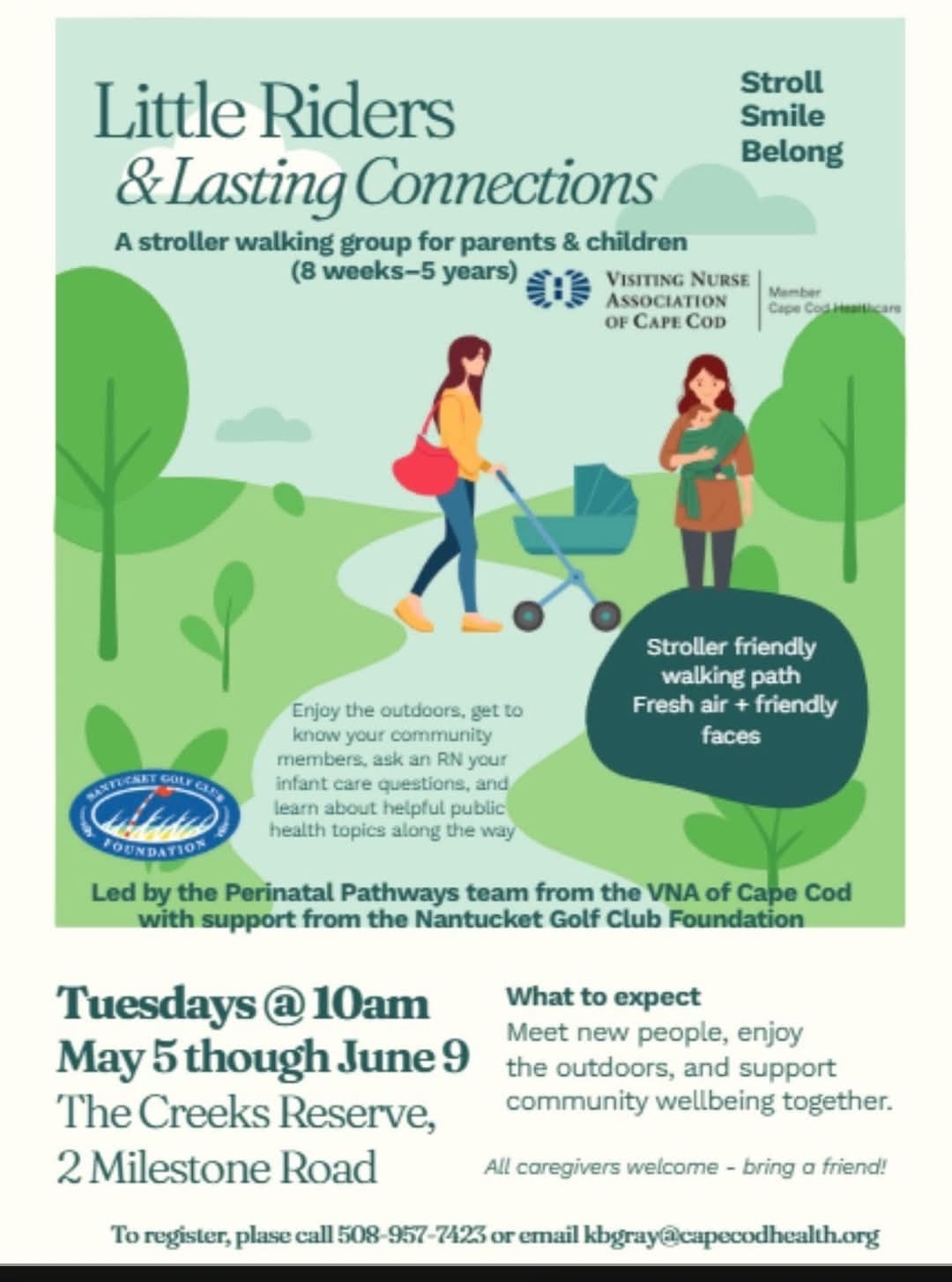 Little Riders and Lasting Connections is a welcoming stroller walking group for parents and caregivers with children ages eight weeks to five years. Held Tuesdays at 10 am from May 5 through June 9 at The Creeks Reserve, this relaxed outdoor gathering offers fresh air, gentle movement, and meaningful connection with other families. Enjoy a stroller friendly path, friendly faces, and time to connect with community members while learning about infant care and helpful public health topics along the way. All caregivers are welcome and encouraged to bring a friend.