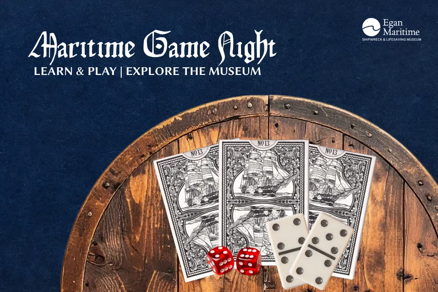 Looking to pass the time this winter? Discover how sailors once “rattled the bones” to fight boredom on long voyages by playing traditional games that are still enjoyed today. We’ll feature classic dominoes and nautical dice games, including Ship, Captain, Crew; Going to Boston; Hazard; and a locally designed, handcrafted original, Shiver Me Timbers.