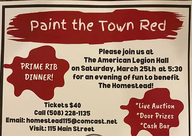 Enjoy an evening of fun to benefit the Nantucket Homestead, featuring a prime rib dinner, door prizes, and a live auction. Cash bar. Tickets are $40 at 508-228-1135. Or send an email to homestead115@comcast.net