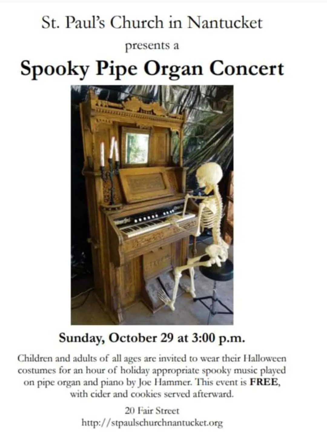 Home Events - Nantucket Events Children's Activity Holiday Music Spooky Pipe Organ Concert